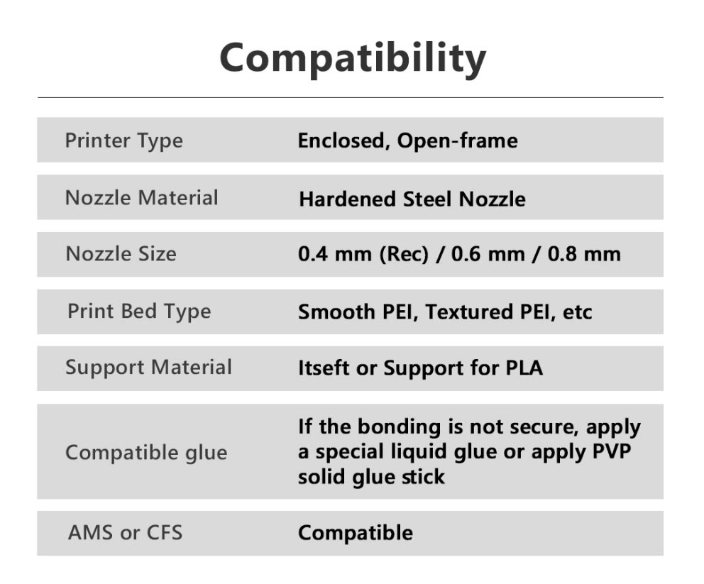- Hardened Steel Nozzle Required